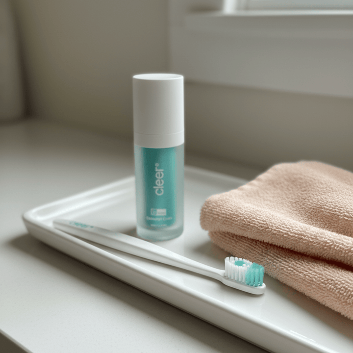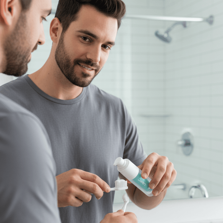Squeeze a pea-sized amount of Cleerdent Enamel Paste onto your toothbrush. Use either a manual or electric toothbrush for best results.